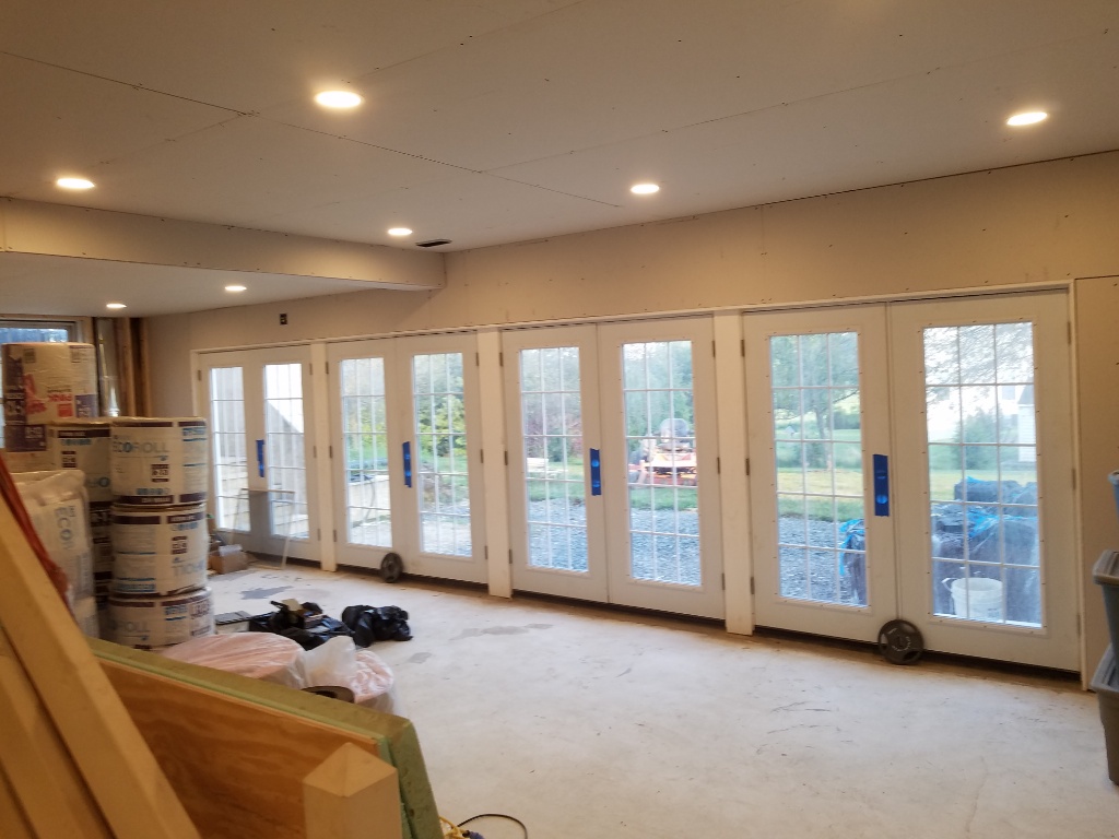 With the ceiling mostly in I'm really loving how my doors look....pre-ceiling I was regretting buying the in stock height instead of special ordering taller, that I couldn't actually afford. But now there is drywall I'm pretty happy with both the result and savings of sticking with the in-stock option.