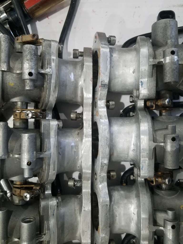Last I beveled the sides of the manifold son now in theory at least the cam covers can be removed without removing the intakes.