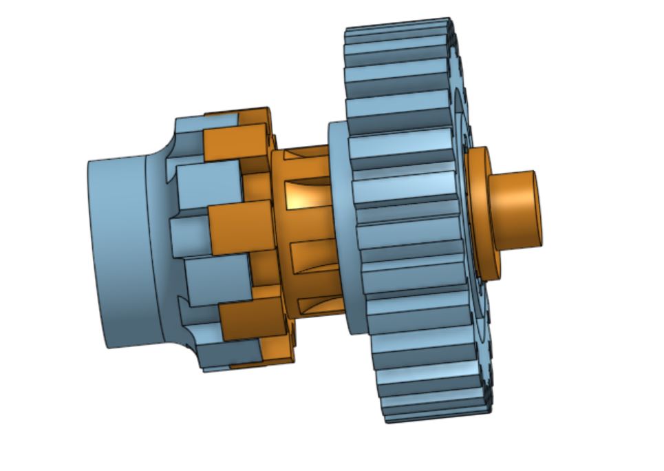 I started roughing it out..the blue is the current hub cut down and the orange the new shaft, the gear will sit in the middle with a bearing on each side