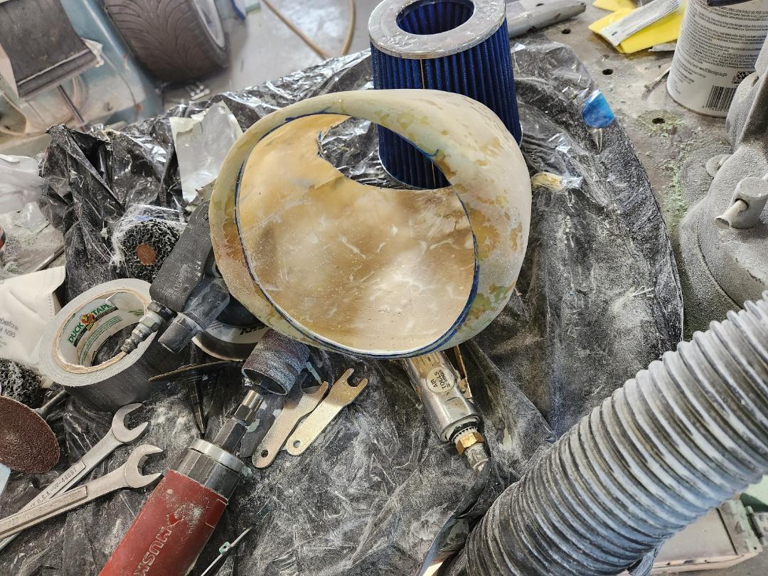 I realized the whole trying to flex it and coat the inside was just plain silly so what I did was trim the halves until they fit then built up the outside where I could now that it was trimmed to clear the tiny spots.