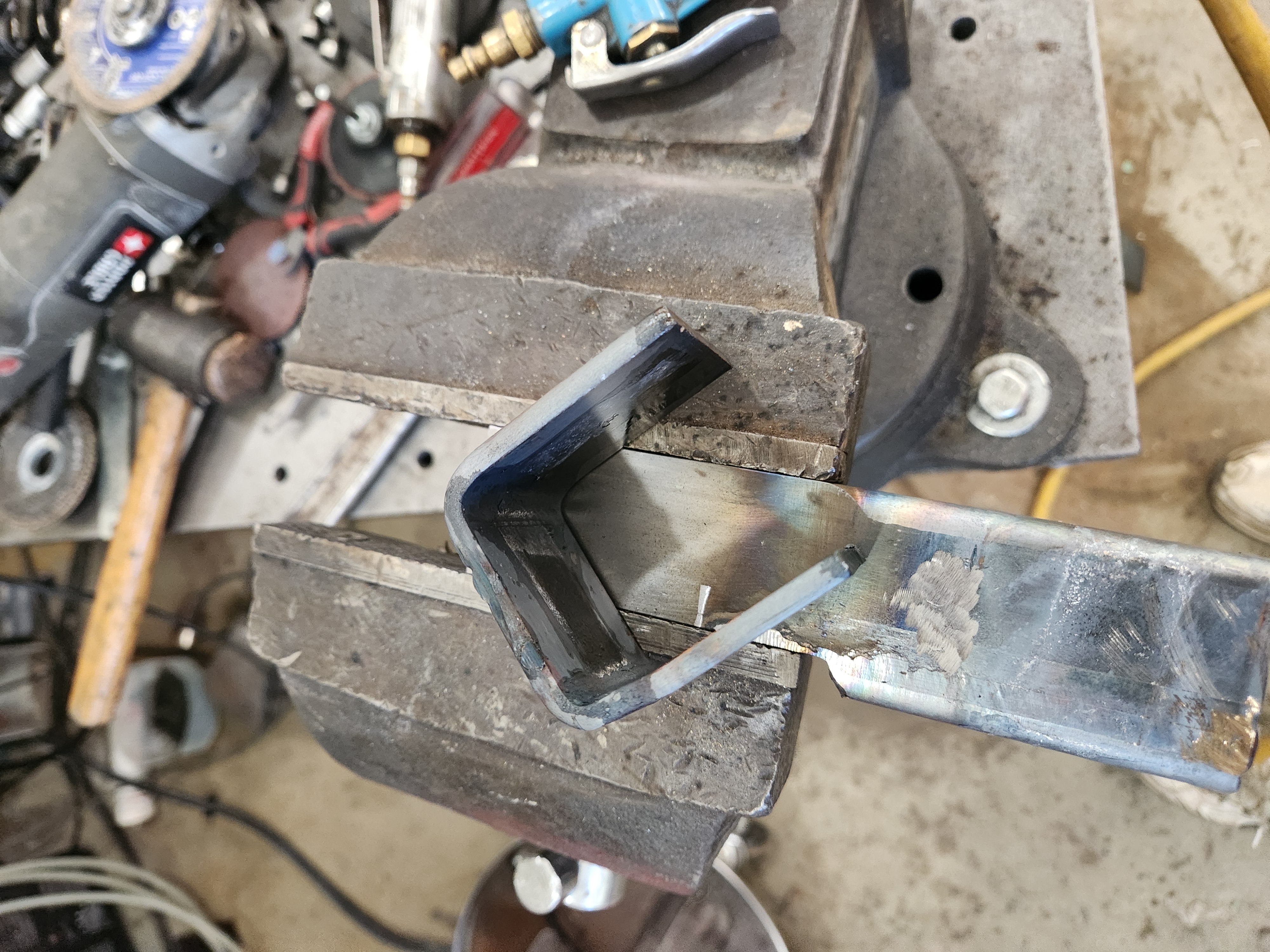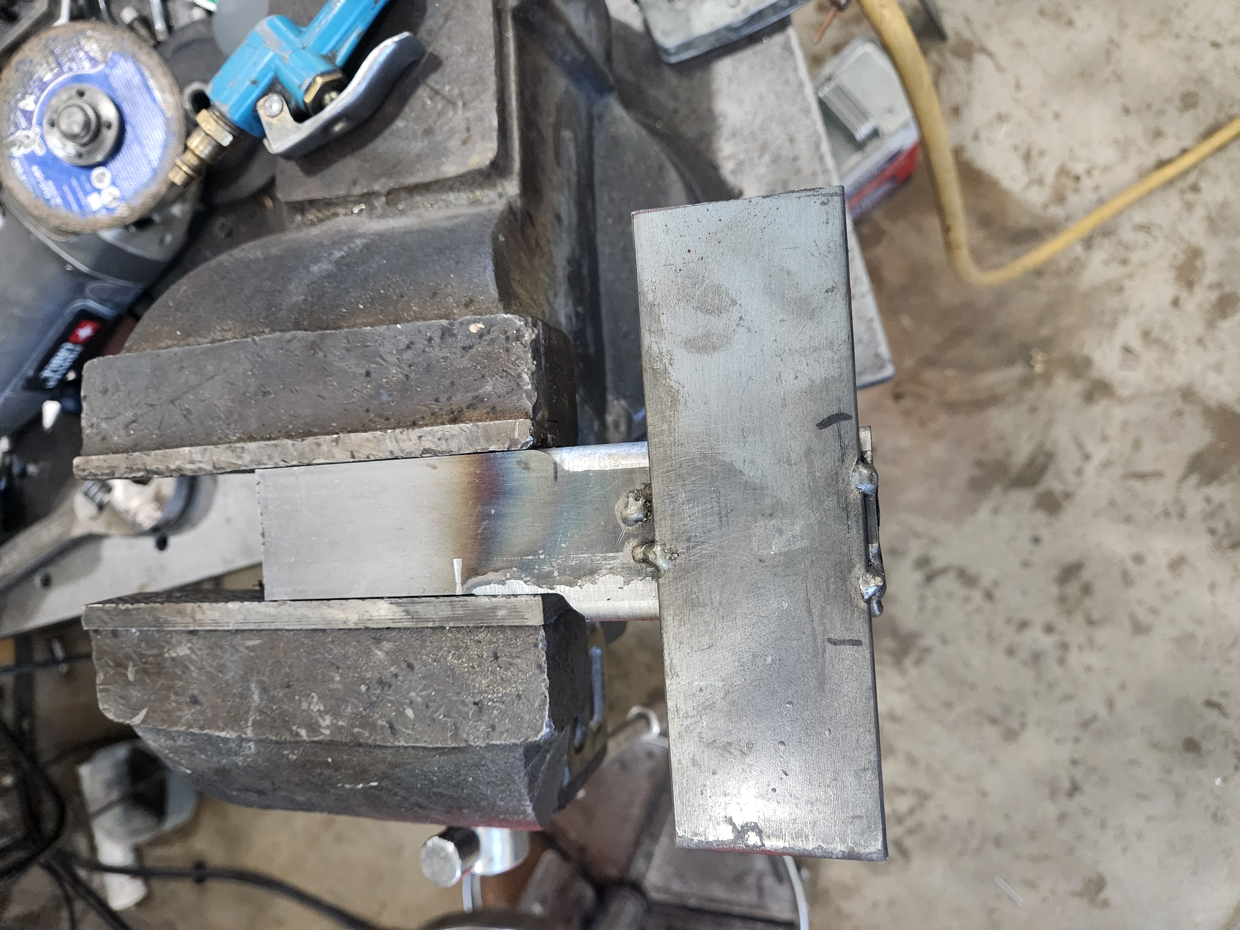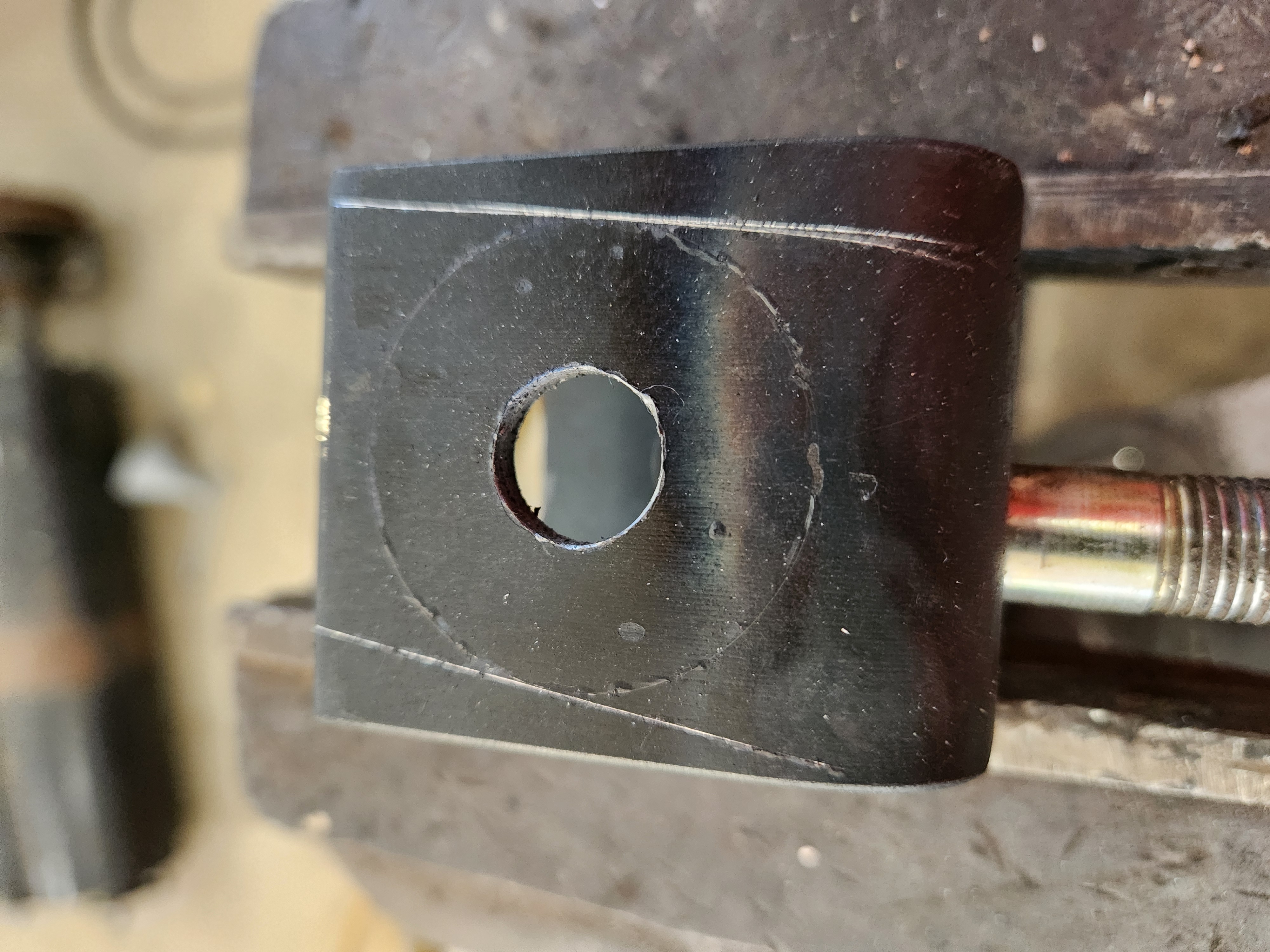 Then to the mill for holes , shape it, and tack a bolt
