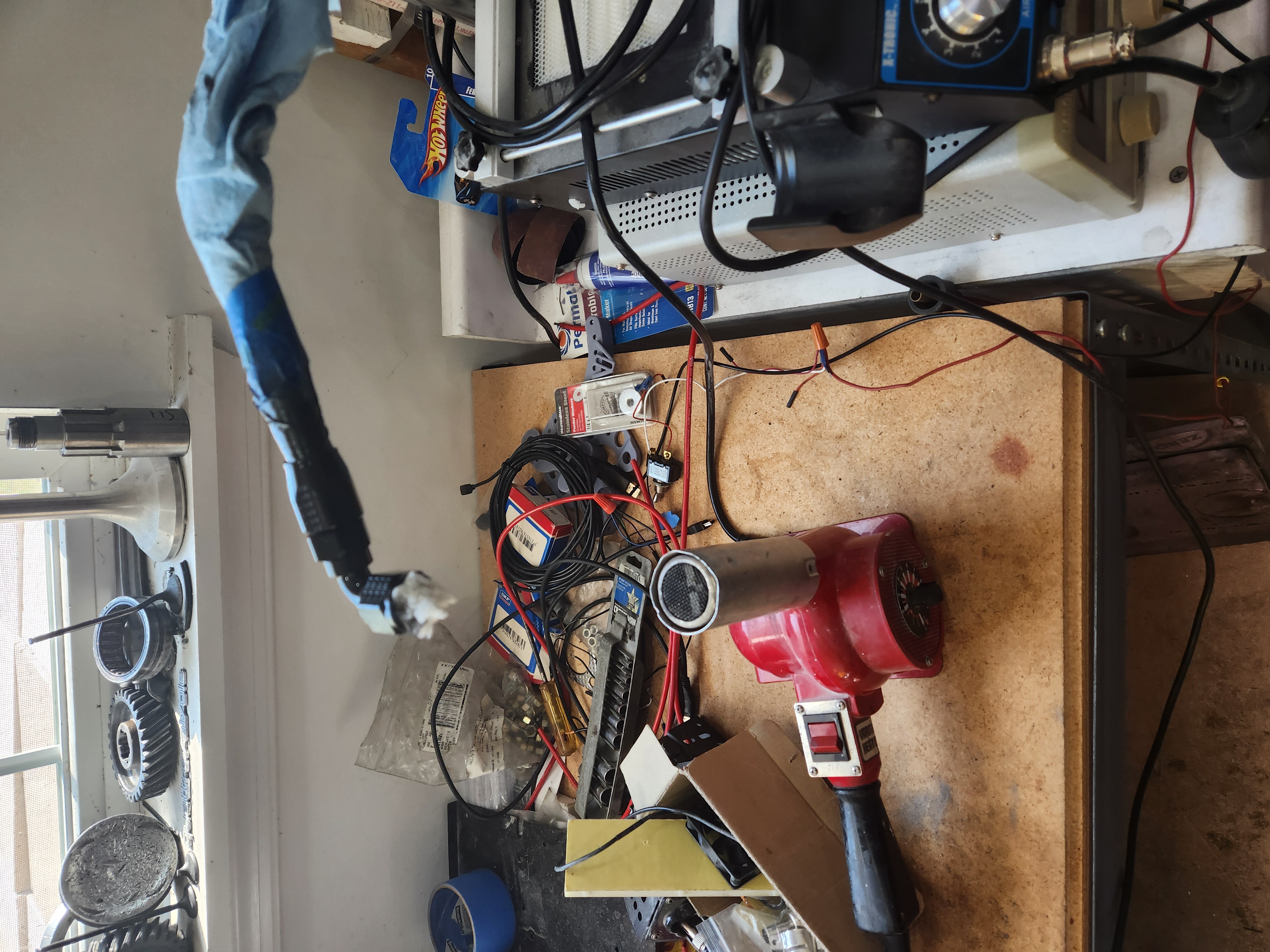 Step 1, the air box. When I fitted it last time I just removed the fuel return hose with a plan to relocate it at a future date....which was today. I found a fitting that would work but in the wrong color so "for now" I used it anyway, spray painted it the right color and setup the the hot air gun to speed up the drying.