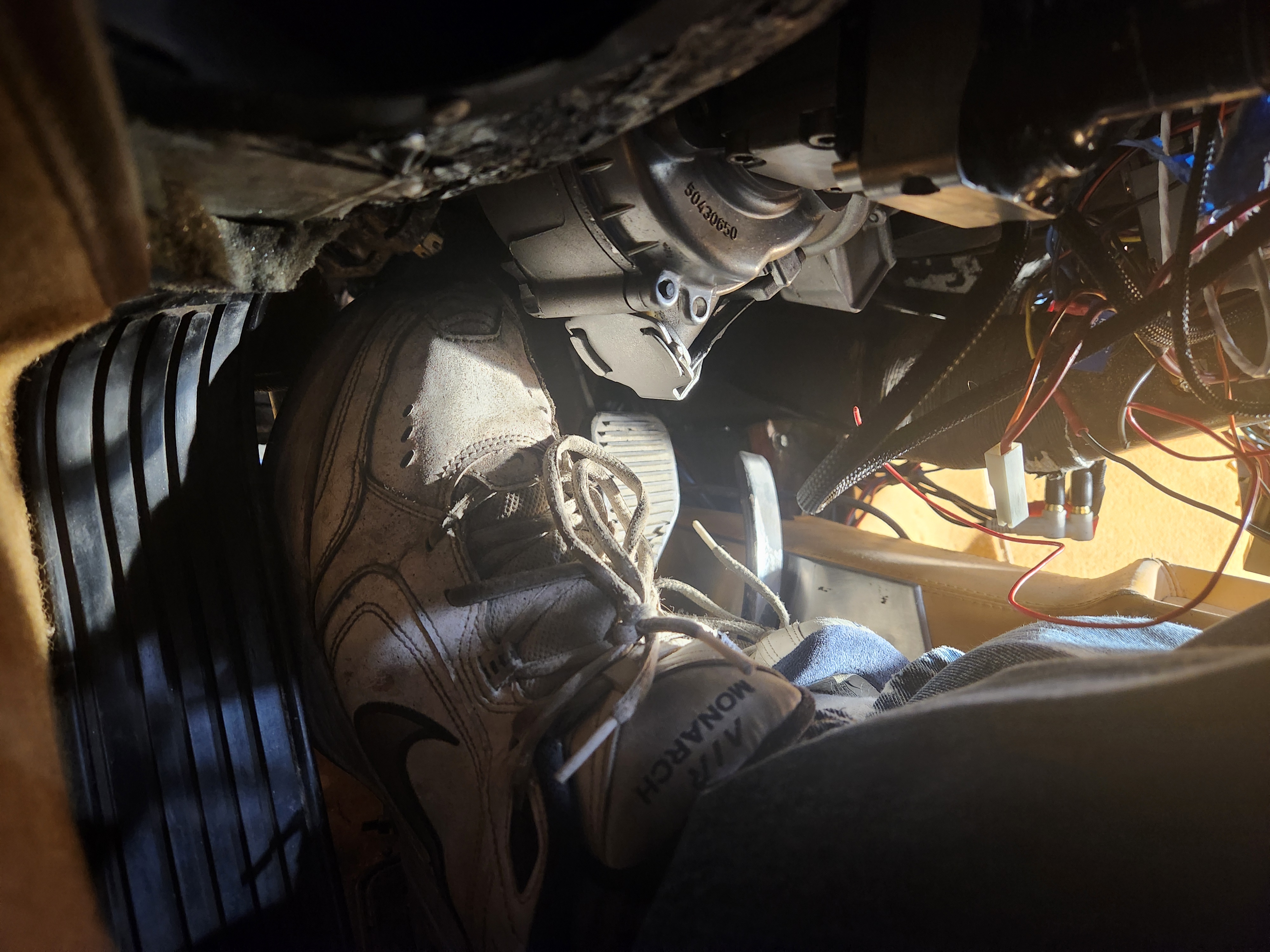 I had a simple job, install the pedal box, so you know I dicked with it for WAY too long. I was remembering my feet hitting stuff so I decided to lower the pedals a little.....but realized I kind of couldn't, the adjusters are at or post ax really since jam nuts are already gone. So I made a plan for nice mastercylinder spacers but I hate to invest the time until I really know what I wants....washers :oops: